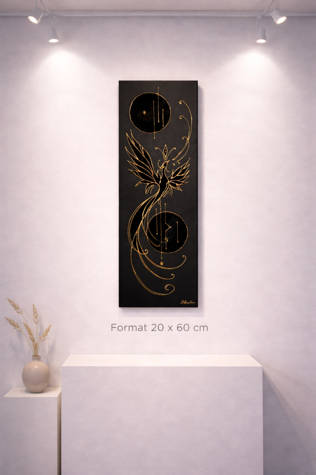 Création tableau Pièce unique , énergisée et magnétisée au moment de la création Symbolique du Phénix : Taille : 20x60cm